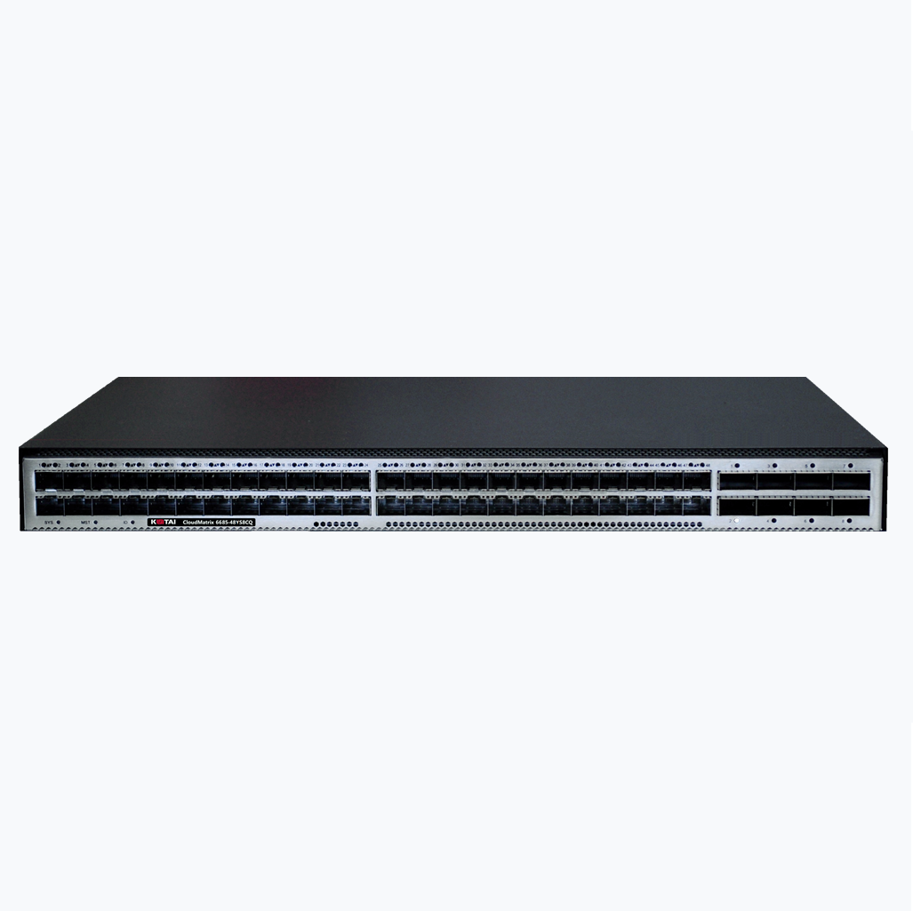 CloudMatrix 6685-48YS8CQ 交换机默认提供48个25G SFP28接口,8个100GE QSFP28接口,可通过升级支持48个50G SFP56接口,8个200GE QSFP56接口。